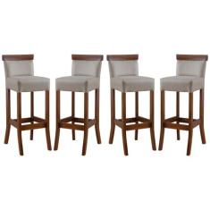 Kit 4 Banquetas Alta com Encosto Estofada 36x100 Cm Diamantina Madeira