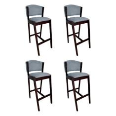 Kit 4 Banquetas Alta de Madeira Maciça Castanho Premium Ana com Encost
