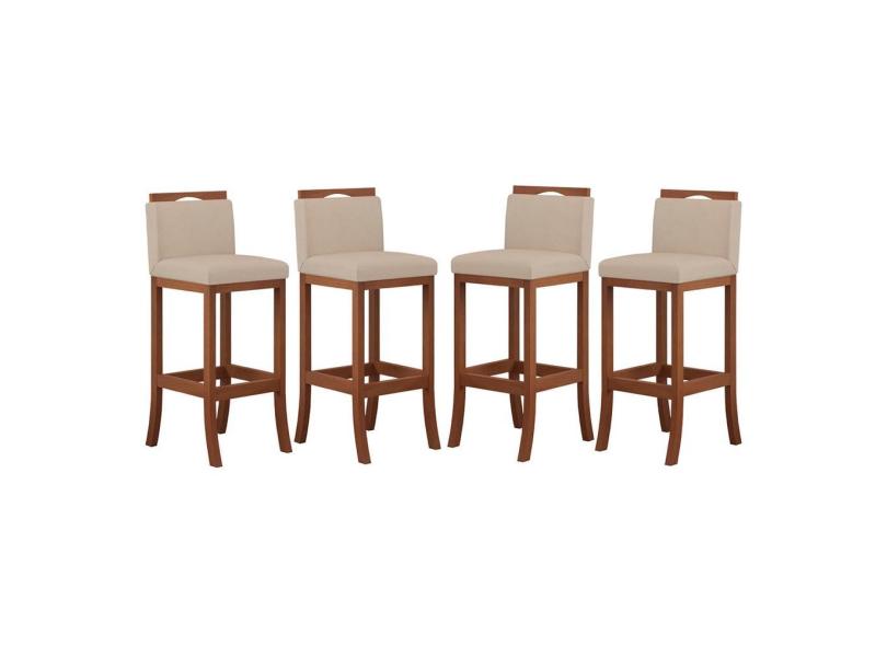 Kit 4 Banquetas Alta de Madeira para Cozinha Suede Bege