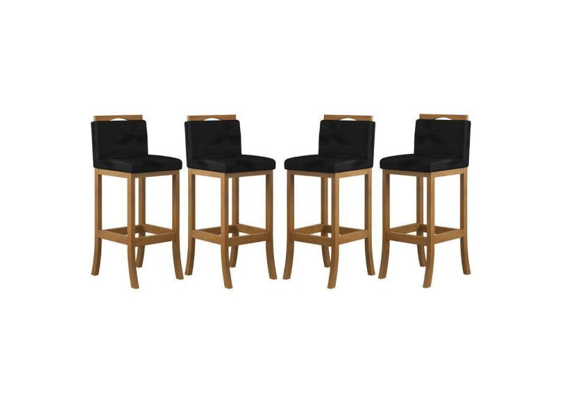 Kit 4 Banquetas Alta Encosto Estofado 38x102 Cm Turim Madeira Maciça Amêndoa Suede Preto CCS
