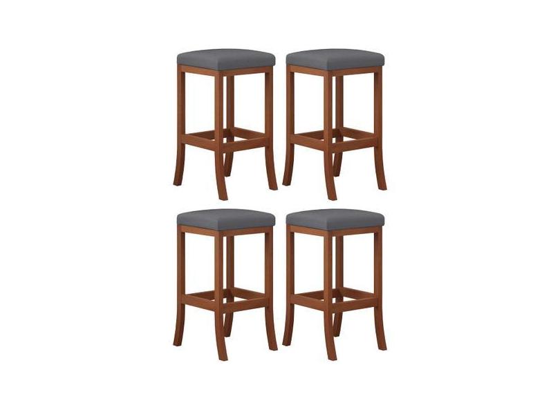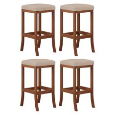 Kit 4 Banquetas Alta Estofada para Bancada Barcelona Madeira Castanho