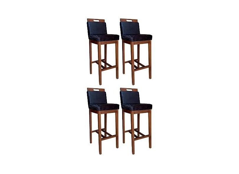 Kit 4 Banquetas Alta Estofada Veneza 104 Cm Madeira Maciça Suede Preto CCS