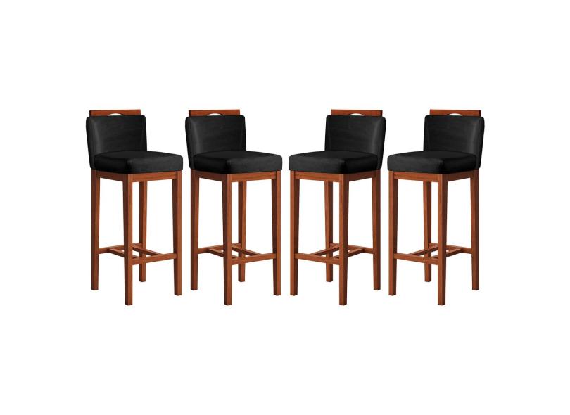 Kit 4 Banquetas Alta Estofadas para Bancada 38x102 Cm Líbia Madeira Maciça Suede Preto CCS