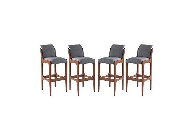 Kit 4 Banquetas Alta Irlanda 45 x 101 Cm Madeira Maciça Imbuia Linho Cinza L55 - RMI