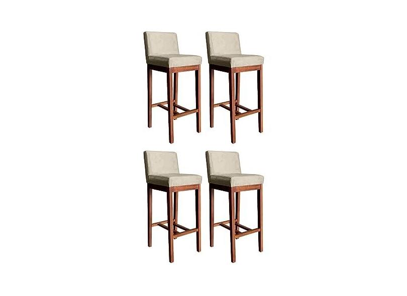 Kit 4 Banquetas Alta Lisboa Estofada 100 Cm Madeira Maciça Suede Bege CCS