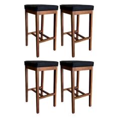 Kit 4 Banquetas Alta para Bancada de Cozinha Bali 74 Cm Madeira Suede