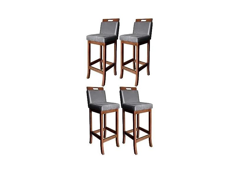 Kit 4 Banquetas Alta para Bancada Milão Madeira Castanho Suede Cinza CCS