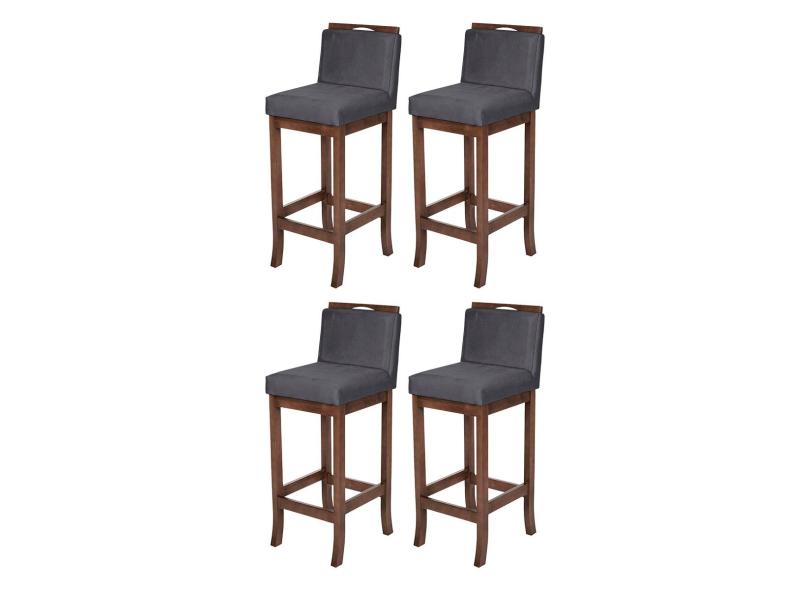 Kit 4 Banquetas Alta para Cozinha Americana Turim Madeira Capuccino Suede Cinza CCS