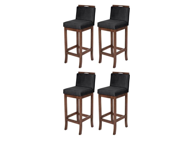 Kit 4 Banquetas Alta para Cozinha Turim Madeira Capuccino Suede Preto CCS