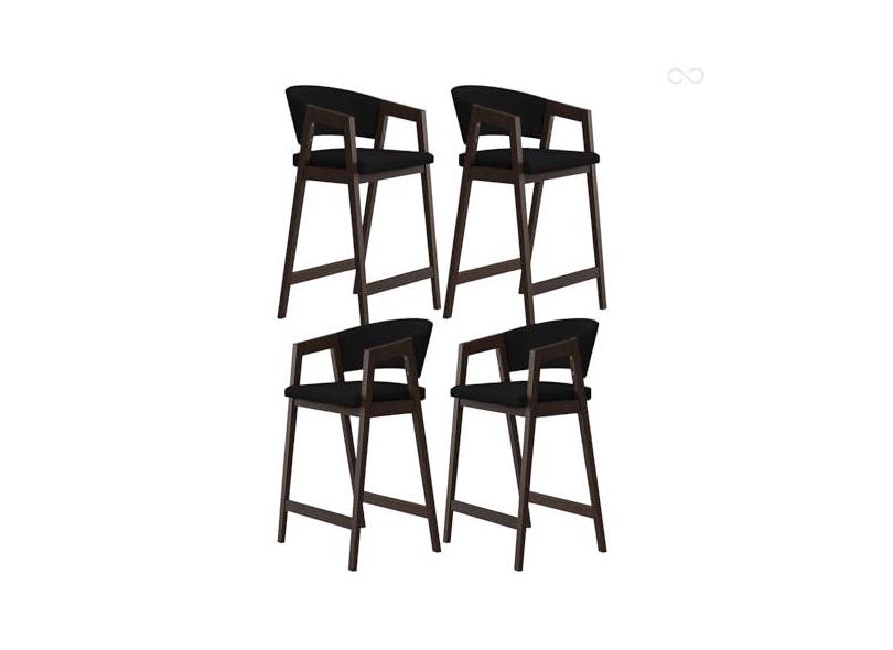 Kit 4 Banquetas Alta para Ilha de Cozinha Ravena Madeira Maciça Capuccino Suede Preto CCS
