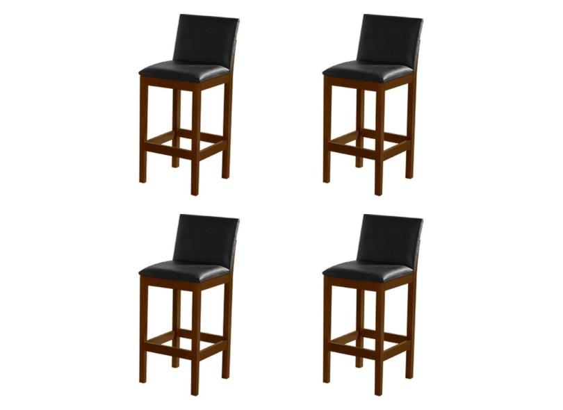 Kit 4 Banquetas Alta Pérola com Encosto Estofada em Couro Pu Preto Madeira Maciça Imbuia