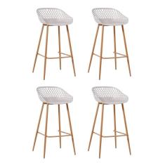 Kit 4 Banquetas Alta Polipropileno e Aço Mônaco Fratini Nude
