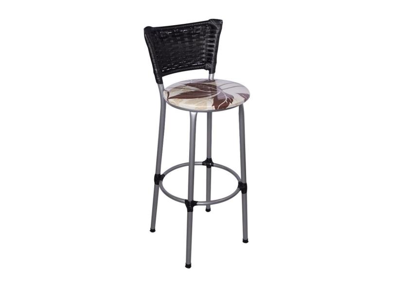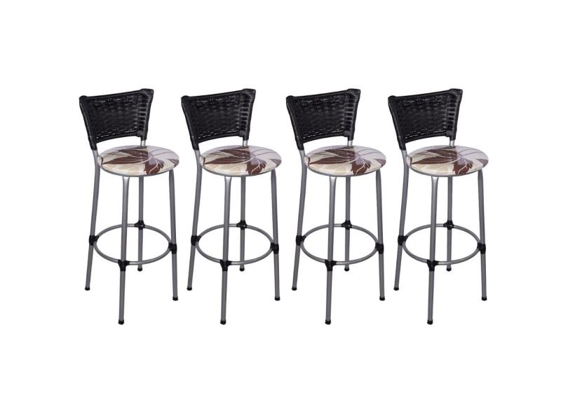 Kit 4 Banquetas Alta Prata Junco com Assento Floral Marrom Fortmix