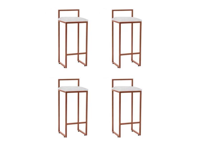 Kit 4 Banquetas Altas Industriais Em Aço Dori Cobre Assento Suede Branco - Preto
