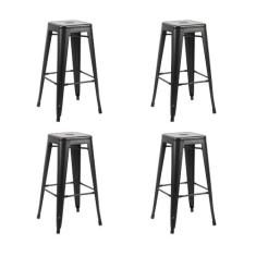 Kit 4 Banquetas Altas Iron Tolix Titan Rivatti Preta Base Metal