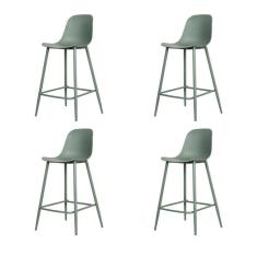 Kit 4 Banquetas Altas Miami Abi Fratini 101,50 Cm (altura) Polipropileno Verde Aloe Base Aço Pintado