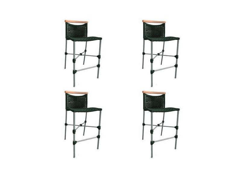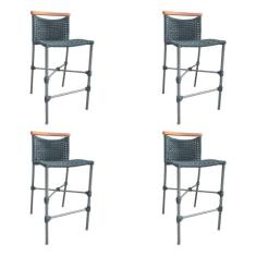 Kit 4 Banquetas Anne em Corda Náutica Base em Alumínio Cinza com Detal