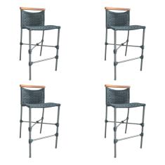 Kit 4 Banquetas Anne em Corda Náutica Base em Alumínio Cinza com Detalhe em Madeira Cinza