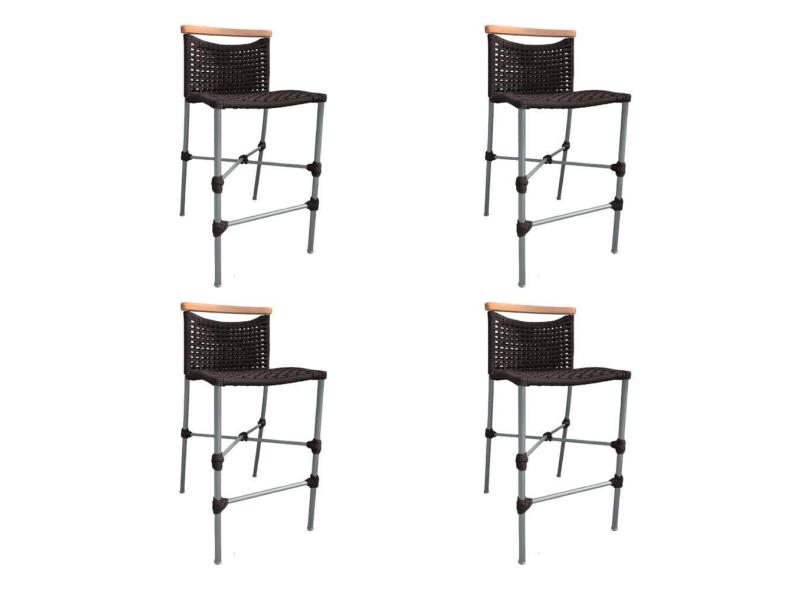 Kit 4 Banquetas Anne em Corda Náutica Base em Alumínio Cinza com Detalhe em Madeira Marrom