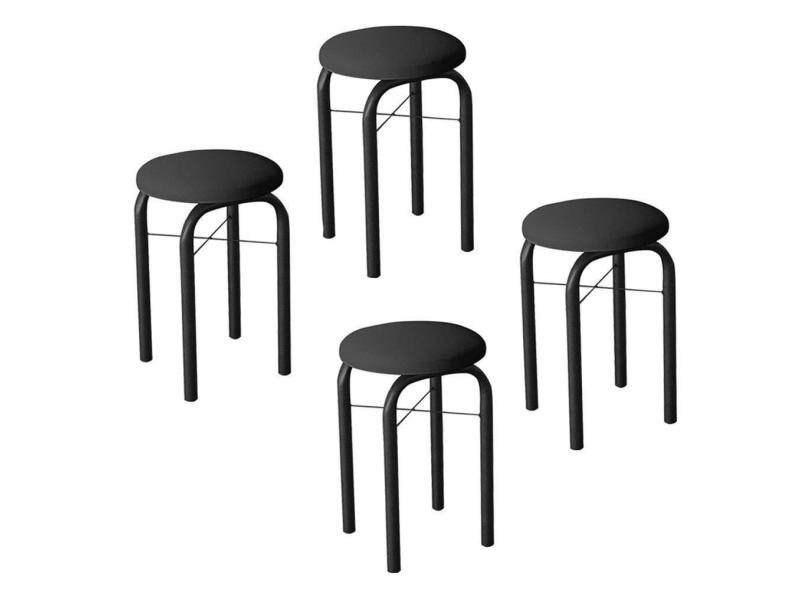Kit 4 Banquetas Baixas Para Cozinha Em Aço Manu Sintético I01 Preto - Mpozenato