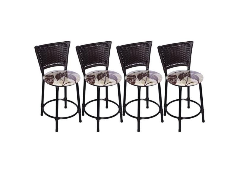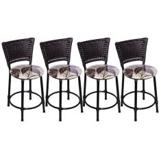 O menor preço encontrado no Brasil para Kit 4 Banquetas Baixas Preta com Encosto Junco Argila Assento Floral Marrom atualmente é R$ 438,97.