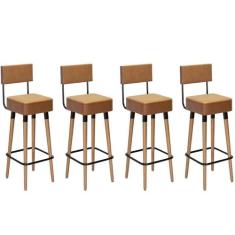 Kit 4 Banquetas Banco Alto Barcelona Couro Amarula Bar Cozinha Pés Mad