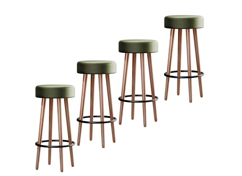 Kit 4 Banquetas Berlin Alta 70cm Estofado Verde - Salaone