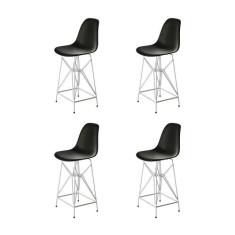 Kit 4 Banquetas Bistrô Alta Eames Preta Base Ferro Branco - Cor: Preto