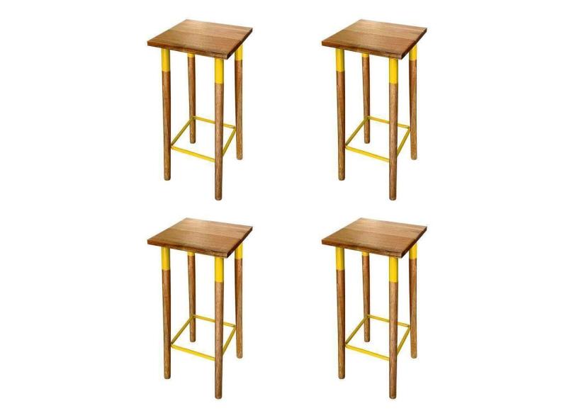 Kit 4 Banquetas Bistro Industrial Colors Ferro E Madeira Maciça - Amarela Amarelo