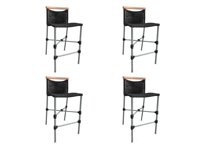 O menor preço encontrado no Brasil para Kit 4 Banquetas Em Corda Náutica Base Em Alumínio Cinza Com Detalhe Em Madeira Preta Preto atualmente é R$ 2.556,80.