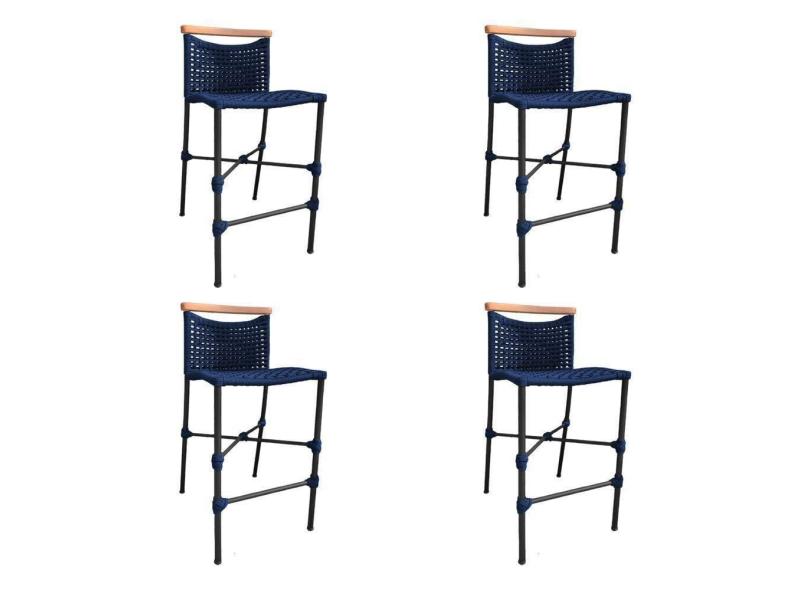O menor preço encontrado no Brasil para Kit 4 Banquetas Em Corda Náutica Base Em Alumínio Preta Com Detalhe Em Madeira Azul Marinho Azul atualmente é R$ 2.556,80.