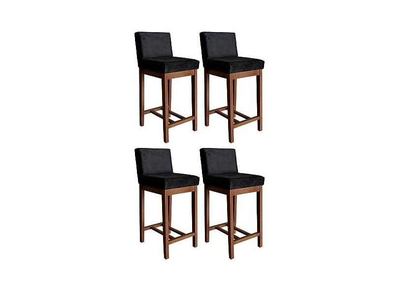Kit 4 Banquetas Estofadas Média Moderna Lisboa 90 Cm Suede Preto CCS