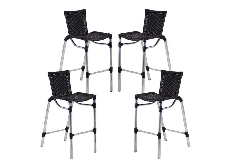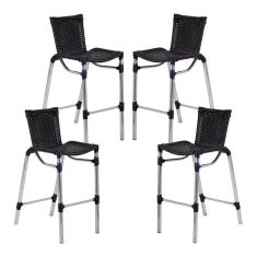 Kit 4 Banquetas Fortaleza Em Alumínio Alta Edícula Cozinha Preto