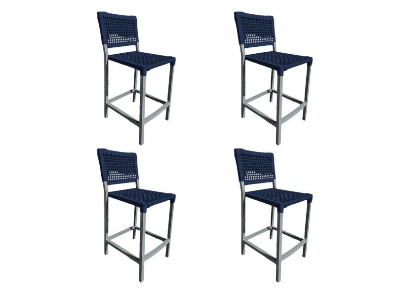 Kit 4 Banquetas França em Corda Náutica e Base em Alumínio Cinza para Área Gourmet Azul Marinho