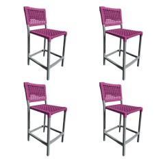 O menor preço encontrado no Brasil para Kit 4 Banquetas França Em Corda Náutica E Base Em Alumínio Cinza Para área Gourmet Rosa - Cor: Rosa atualmente é R$ 2.732,77.