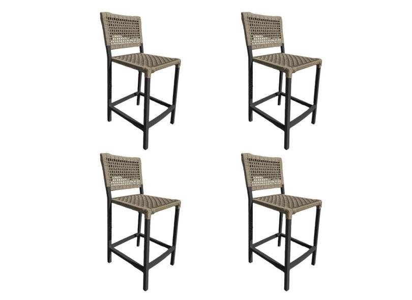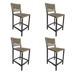 Kit 4 Banquetas França em Corda Náutica e Base em Alumínio Preta para Área Gourmet Rami