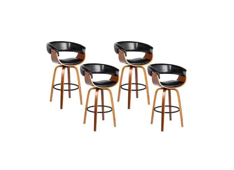 Kit 4 Banquetas Giratória Alta Com Encosto Base Madeira Ravi R02 Pu Pr