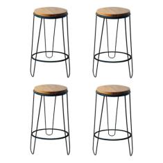 Kit 4 Banquetas Guatemala Industrial Em Ferro E Madeira Maciça Marrom