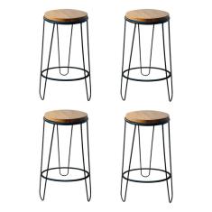 KIT 4 BANQUETAS GUATEMALA INDUSTRIAL EM FERRO E MADEIRA MACIÇA