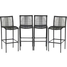 Kit 4 Banquetas Havaí Artesanal Em corda Sintética Para Bar, Balcão, Á