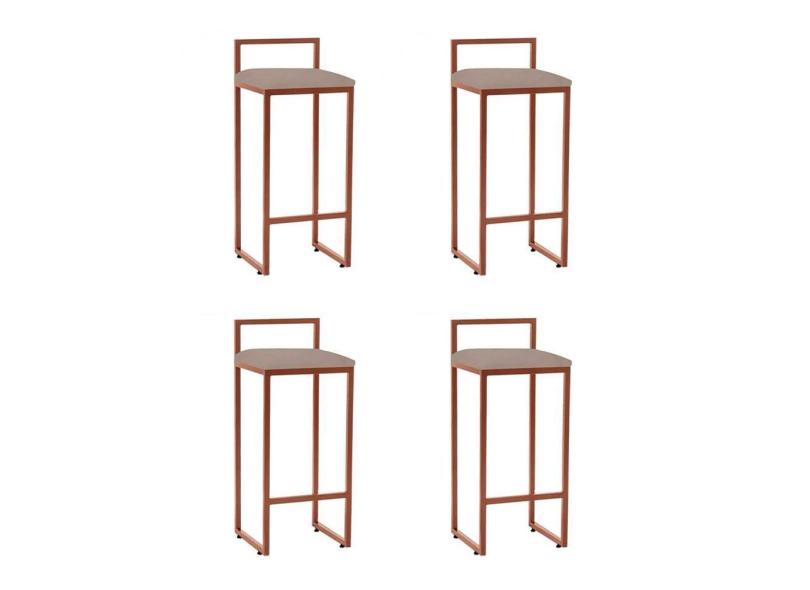 Kit 4 Banquetas Industrial Alta Bar Cozinha Bistrô Em Aço Dori Cobre Assento Suede Bege - Preto