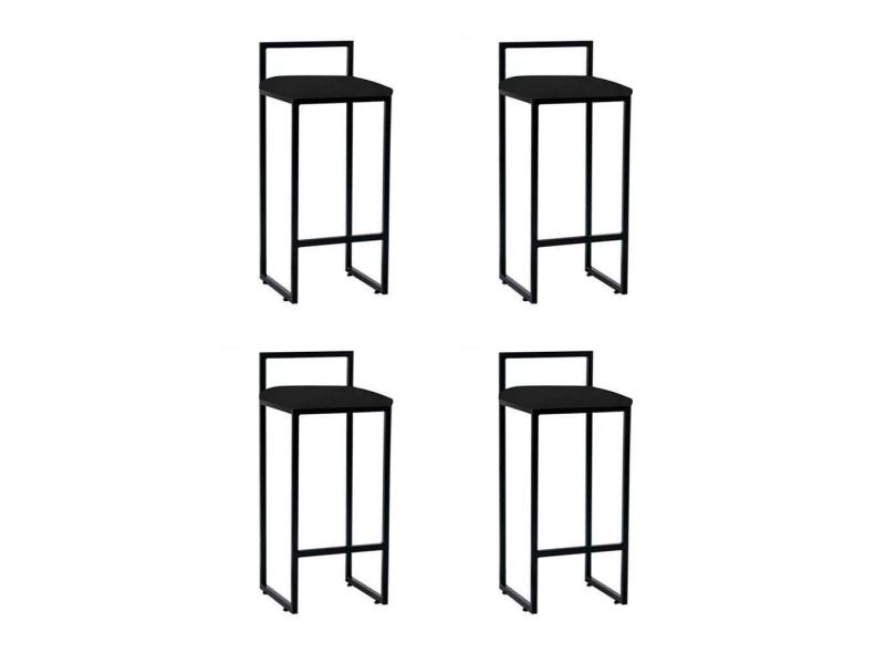 Kit 4 Banquetas Industrial Alta Bar Cozinha Bistrô Em Aço Dori Preta Assento Suede Preto - Preto
