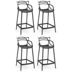 Kit 4 Banquetas Média Allegra 66cm Design Cozinha/bancada - Preto