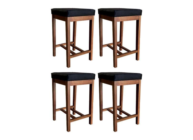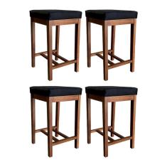 Kit 4 Banquetas Média Bali Estofada 64 Cm Madeira Maciça Suede Preto CCS