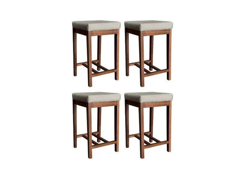 Kit 4 Banquetas Média Bali Estofadas para Bancada 64 Cm Madeira Maciça