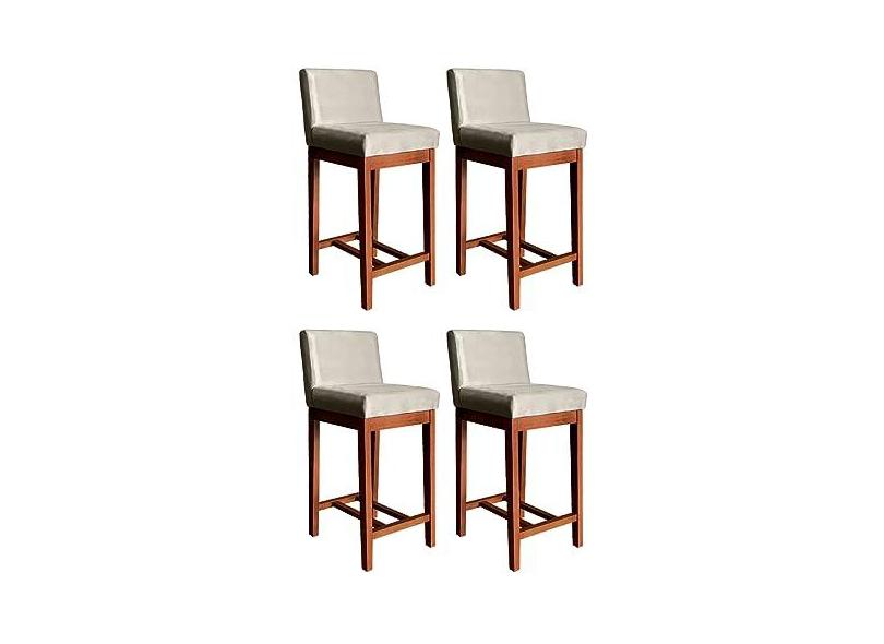 Kit 4 Banquetas Média com Encosto Lisboa 90 Cm Madeira Maciça Castanho Suede Bege CCS