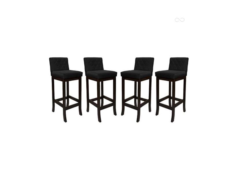 Kit 4 Banquetas Média com Encosto Matelassê Tóquio Madeira Maciça Suede Preto CCS