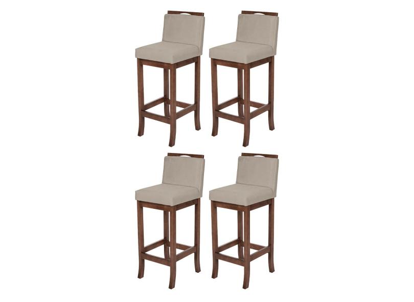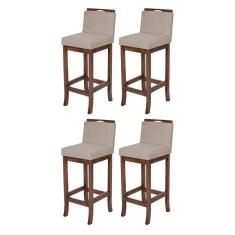 Kit 4 Banquetas Média em Madeira Capuccino Turim Suede Bege CCS