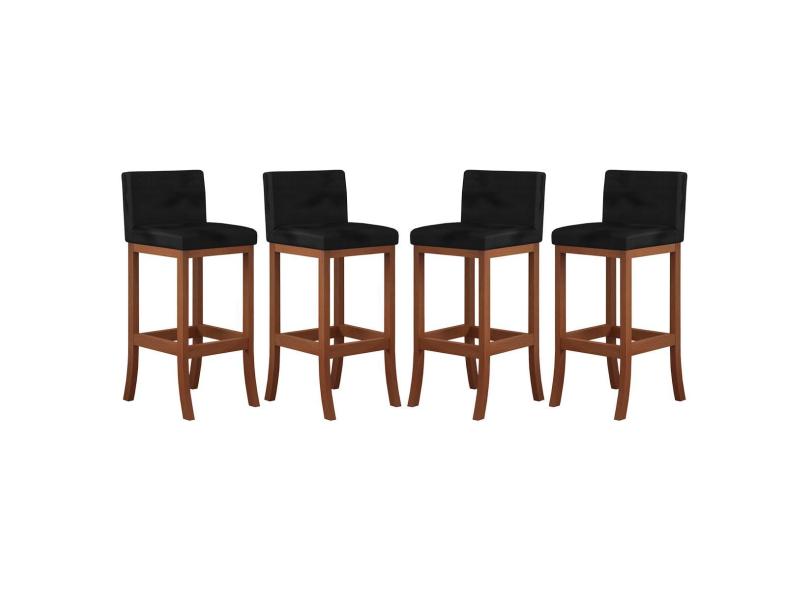 Kit 4 Banquetas Média Encosto Estofado 38x90Cm Espanha Madeira Maciça Castanho Suede Preto CCS