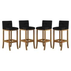 Kit 4 Banquetas Média Encosto Estofado 38x90Cm Ilha Espanha Madeira Ma